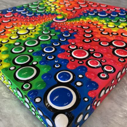 Blob Art; Neon Rainbow Blob painting on a 20″x20″ wood canvas. The blobs are also painted on the sides.